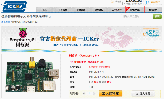 国际知名电子产品分销商E络盟(原派睿电子)已于近日正式授权ICKey平台成为其“树莓派”产品的中国区总代理,国内个人用户即日起可通过ICKey网站直接在线订购“树莓派”(RASPBERRY PI B型 ,512MB)产品,准备体验世界上最小的卡片式台式机!