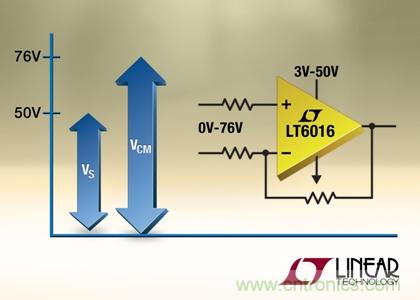 运算放大器提供50µV精准度和0V至76V的输入范围