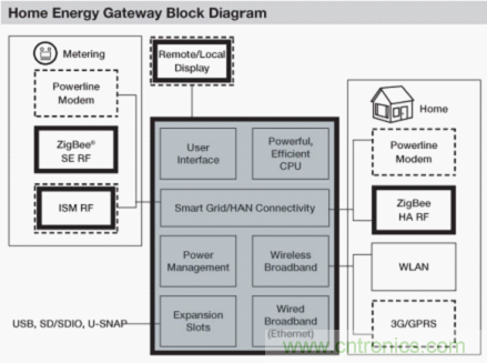 在部署具有通信功能的电表后,可以向业主提供许多应用,以便优化整体能源管理。对电力公司来说,这可以作为一种管理电网负荷并防止电力需求激增的方式。此外,家庭能源管理系统的功能还可以包括:从智能电表中采集实时能耗数据,从各种家电中采集功耗数据;控制家电的开启/关闭;生成仪表板,以提供关于能源使用情况的反馈信息;提供控制菜单,对家电进行有效控制;提供与电力公司和/或互联网之间的链接……目标应用包括家庭局域网络(HAN)、家庭能源网关以及家庭自动化等。