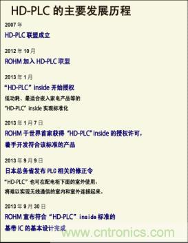ROHM于2012年10月加入“HD-PLC”联盟,并领先于全世界开始着手开发符合“HD-PLC” inside标准的基带IC。