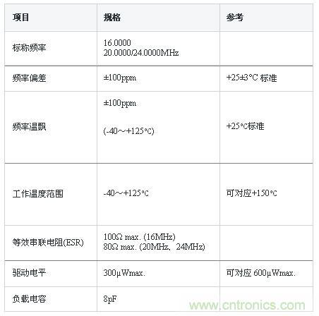 现在的车载ECU间的通信中最常用的CAN是经ISO11898和ISO11519-2认证的通信规格,最大通信速度可达1Mbps。这里所使用的时钟设备的精度是由可达到ECU间的通信标准的配备条件来决定的,一般来说±3,000ppm精度的话是不会产生使用上的问题。