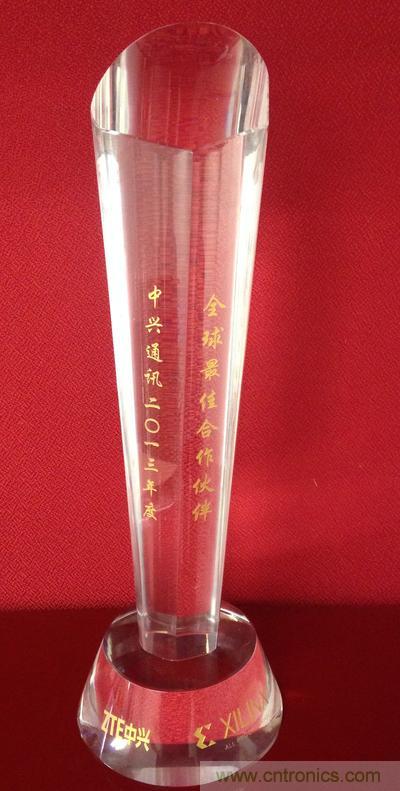 图1:中兴通讯授予Xilinx “2013年度全球最佳合作伙伴奖”