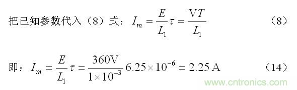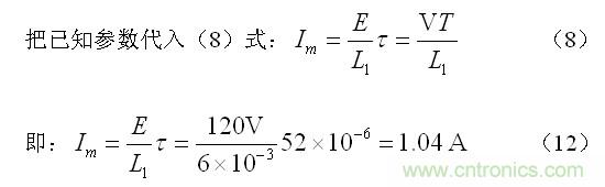为此,我们可以根据(8)式,先计算流过高压包初级线圈的最大电流Im,然后再求其极限电流Imax的值,即:测试时选用迭加电流的值。