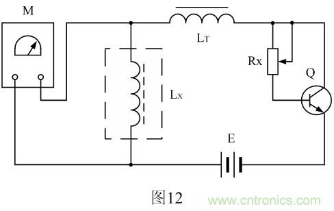 在图11中,E为稳压电源,Rx为可调电阻,Q为晶体管大功率放大器(必须带散热片);调节稳压电源的输出电压,或改变可变电阻的阻值,就可以改变迭加电流的大小,但晶体管大功率放大器集电极与发射极之间的电压降不要大于10V,否则,晶体管大功率放大器的损耗将很大。一般稳压电源都有电流输出指示,所以在测试电路中不需要另外安装电流表。