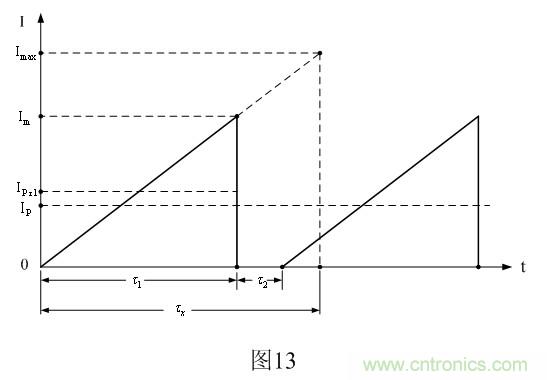 这里顺便介绍一下电流平均值Ip的求法,以及其与最大电流Im和极限电流Imax的关系。图13是电流平均值Ip与最大电流Im和极限电流Imax之间的关系图。