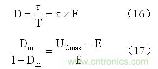 进一步求占空比D和工作频率。下面(16)式和(17)式是计算脉冲宽度