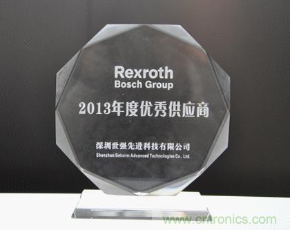图1:世强获博世力士乐(西安)2013年度优秀供应商奖