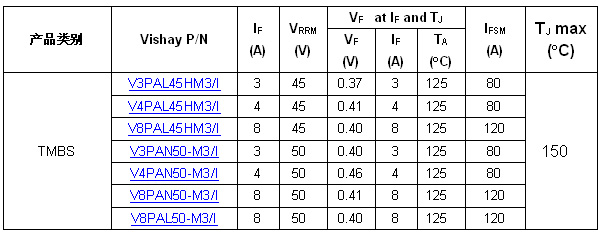 图1:Vishay推出用于汽车和商业应用的新款45V和50V TMBS整流器
