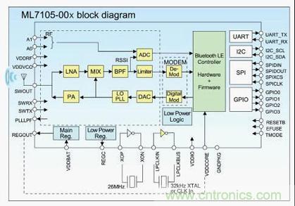 图1:Bluetooth® LE LSI(ML7105-00x)的内部结构