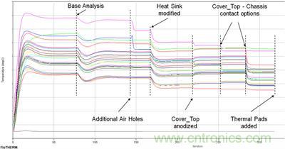 为提升整体设计做出调整,如产品的机械、电气和 EMC 性能间的协调以及温度限制、可制造性或成本等其他限制条件,有利于实现连续改进。对每个学科而言,这些改进可以看作是对基础设计的完善。在进行热设计时,则可视为对监控点温度的调整,从而与将用作测量物理原型的传感器的位置相匹配。