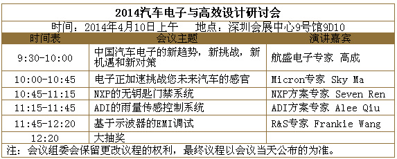 1.汽车电子和高效设计研讨会(4月10日上午,深圳会展中心9号馆9D10)