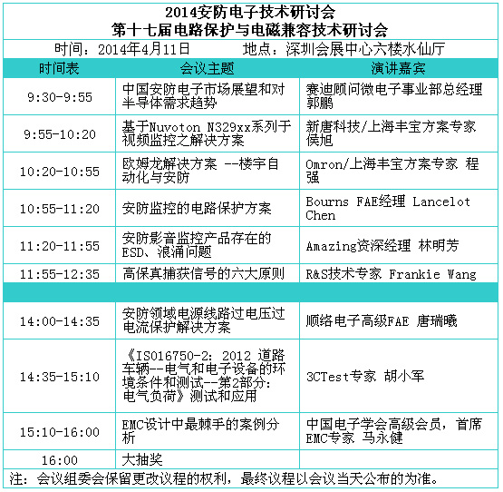 3.2014安防电子技术研讨会暨第十七届电路?;?/a>与电磁兼容技术研讨会 (4月11日,深圳会展中心六楼水仙厅)