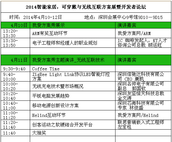 4. 三大热点活动:智能家居,可穿戴与无线互联方案展暨开发者论坛(4月10-12日,深圳会展中心9号馆9D10-9D15)