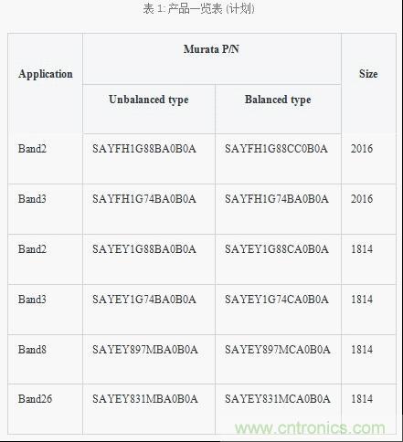 目前为止介绍的TC-SAW相关的产品实际上是目前主流的2.0×1.6mm (2016)尺寸的产品阵容以及今后将要成为主流的1.8×1.4mm (1814)尺寸的产品阵容,如表1所示。这些产品已经开始量产并且不久后将向市场供应,由于已经得到了顾客的良好反馈,预计今后还将根据市场需求进行扩大。