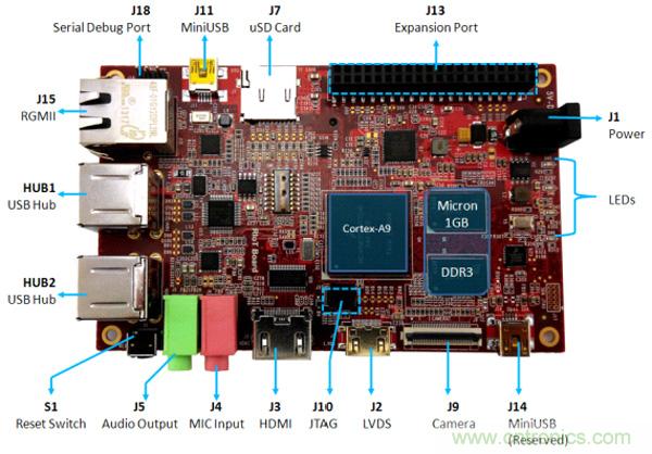 图1:e络盟独家推出的基于飞思卡尔i.MX6Solo处理器的新型开源单板平台