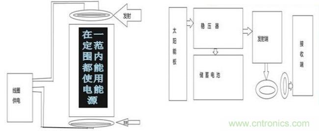 未来设想:在楼的顶部与底部各埋一发射线圈,运用太阳能为整栋楼实施无线供电。