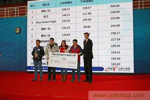 本次大赛评审委员会由大联大、白金级赞助商恩智浦(NXP)和行业内专家共同组成,经过对所有参赛飞行器软硬件架构、外观设计、现场飞行平稳度和精准度等方面的综合考量,来自南京航空航天大学南航二队参赛队的四轴飞行器凌空号作品表现优异,以306.69的总分最终获得了本届大赛的总冠军。北京科技大学的金戈参赛队和郑州航空工业管理学院的Blue Dream High参赛队分别获得了亚军和季军。
