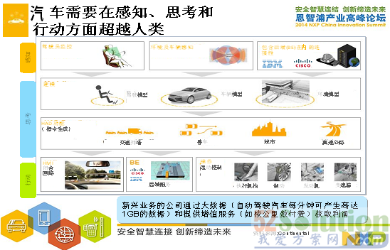 汽车在未来会更加紧密地相互连接,会有更多的信息通过车与车之间,或者是车与其他的设施和周边的设施之间进行交换,也就意味着我们的车子要连接到云当中。NXP的安全互联方案可以确保信息传输的安全性。