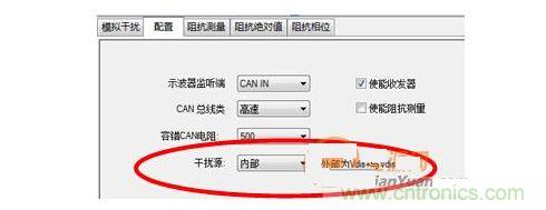 打开CANStress配置,将干扰源确定为内部。保证CANL对地短路。如图 7所示。