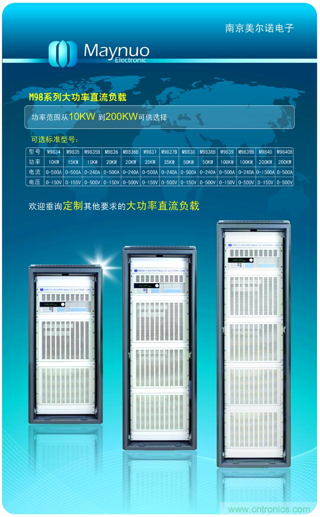 【导读】近日,南京美尔诺推出多种型号的M98系列大功率直流负载,可提供选择的功率范围是10KW到200KW。如有其他要求,欢迎垂询??炖纯纯窗?。