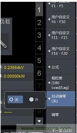 在如图1所示测量菜单里,用户可配置自动调零开关,若开启自动调零,则在改变测量量程和输入滤波器后,仪器会自动执行调零;而如果长时间使用同一个测量量程和输入滤波器,PA8000高精度功率分析仪的零电平就可能因周围环境的变化而发生改变,这种情况下,须执行手动调零。