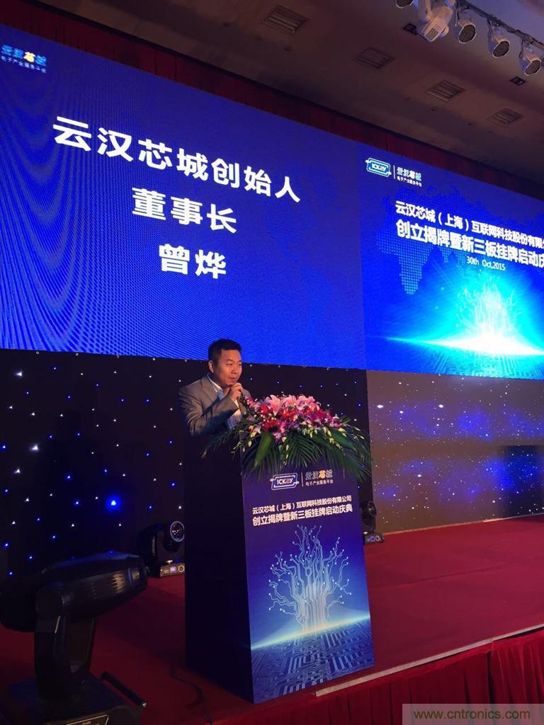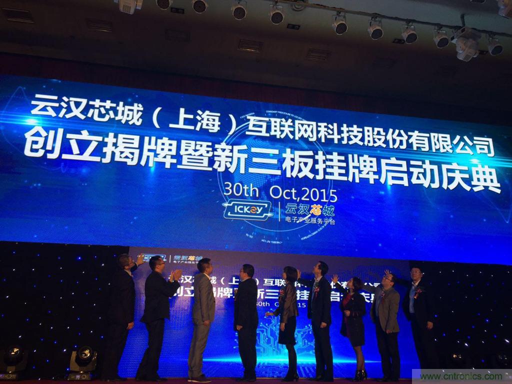 启动仪式上,云汉芯城创始人、董事长曾烨介绍了公司在传统电子产业耕耘多年后毅然转战互联网的蜕变历程,并宣布云汉芯城已顺利完成股改,成功启动新三板挂牌。上海云汉电子有限公司正式更名为云汉芯城(上海)互联网科技股份有限公司(以下简称“云汉芯城”)。