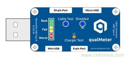 qualMeter能用于各种主流的USB充电线缆的测试,它还可以测试5V充电器的带负载能力,从而大致确定其质量。