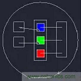 大家都知道,一个全彩灯珠需要五条焊线,如图所示