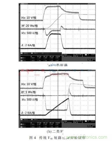 为验证本文所设计的短路检测策略较传统短路检测方法的优越性,使用3 300 V/1 200 A IGBT模块进行短路实验[5],在实验中将母线电压调整为1 500 V。