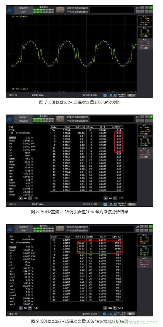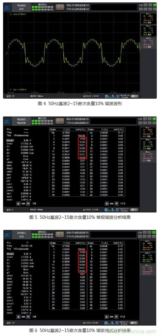 如图 1所示包含谐波的50Hz信号波形,常规谐波和谐波模式谐波均能得到正确的谐波含量,并且精度很高。