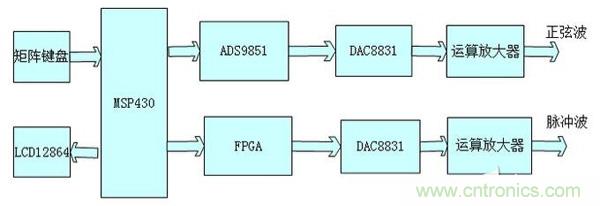 【导读】本系统以MSP430为控制核心设计并制作一个正弦波和脉冲波信号源。本实验分为四大??椋直鹗羌躺枘?椋也ú??,脉冲波产生??楹鸵壕允灸??。