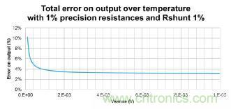 图3: 总误差, 假设电阻精度为0.1% Rshunt精度为 1%