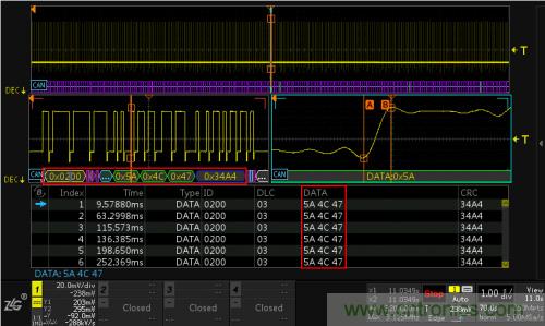 直接将波形数据解码后以十六进制、十进制或字符的形式呈现出来,省去了工程师转换的过程,大大加快了开发效率。如图3为一段CAN协议的解码,可以一步到位。
