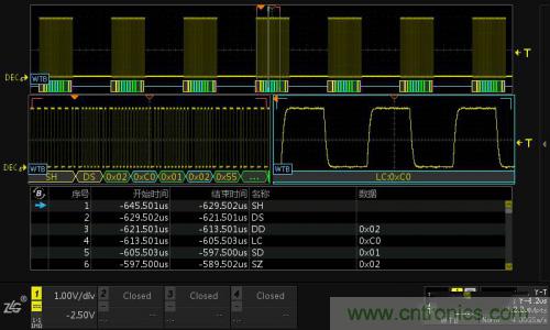 最初的示波器只是一个简单的波形显示兼数据测量,而我们需要获取协议波形深层次的含义,则需要一段一段去分析。