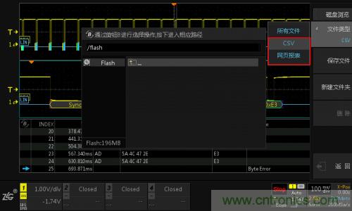 同时,支持解码细节显示,具有详细的事件表(事件表内容包括开始时间、结束时间、名称及数据),可以以报表网页或CSV格式导出,方便工程师进一步分析,如图11所示。