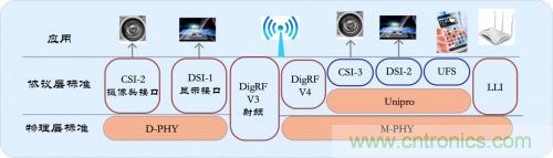 MIPI联盟有不同的工作组,分别定义一系列的手机内部接口标准,如摄像头接口CSI、显示接口DSI、射频接口DigRF等。统一接口标准的好处是手机厂商可以根据需要从市面上灵活选择不同的芯片和模组,方便快捷的进行外观和功能的设计。