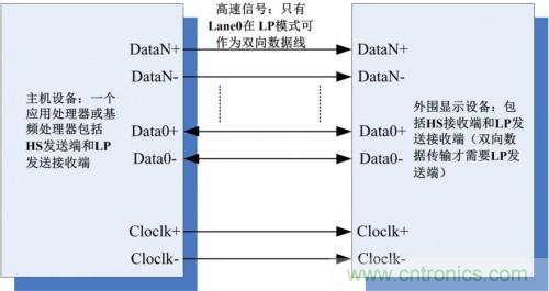 MIPI-DSI利用单端和差分信号线进行数据传输,LP模式下进行单端数据传输,HS模式下进行差分数据传输,使用可以双向传输的Data0+/Data0-数据Lane进行配置。