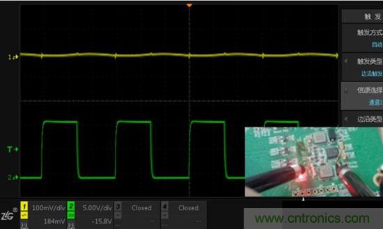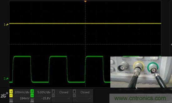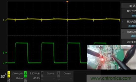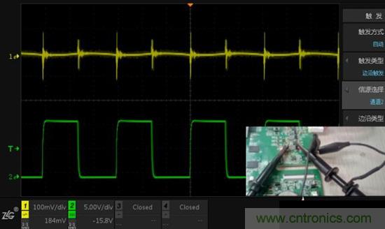 图2.CH1使用夹子测量电源输出,CH2悬空