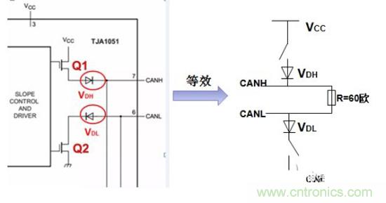 图6 CAN收发器等效结构