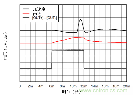 图1:螺线管加速度图:加速度= 5.85G / div;电流= 2A / div;电压= 5V / div