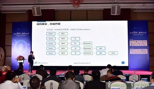本次活动现场,迈瑞微重点发布了三个嵌入式指纹??椴废盗校渲蠱icroarray ECS256,尺寸达到256×360,符合身份证规格,满足公安部“人证合一”的下一代电子身份证推广需求。面向智能门锁等物联网安防应用,Microarray ECS120和ECS160系列则实现了结构兼容、向后兼容,可以为客户未来的产品做好结构设计——现在可以装,升级以后还可以装,客户可以用不同??榉庾啊⒚嫦虿煌目突?,这是一个非常强大的福利。