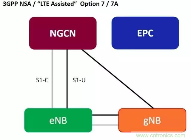 这次冻结的3GPP R15 NSA(5G NR非独立组网)核心标准部分内容:,即沿用4G核心网(EPC),以4G作为控制面的锚点,采用LTE 与 5G NR双连接的方式,利用现有的LTE网络部署5G,以满足领先运营商快速实现5G覆盖的需求。