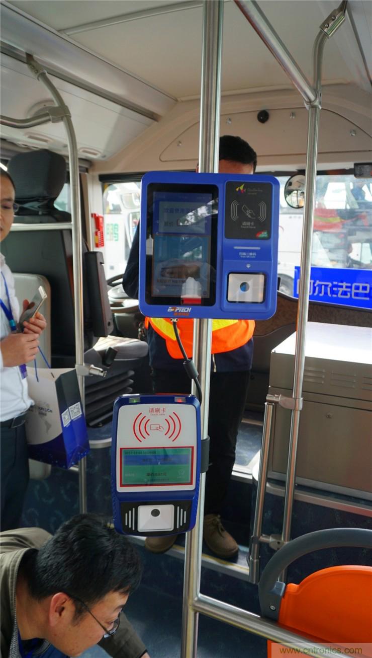 巴士上也安装了相应的付费刷卡机以及线路进度显示图