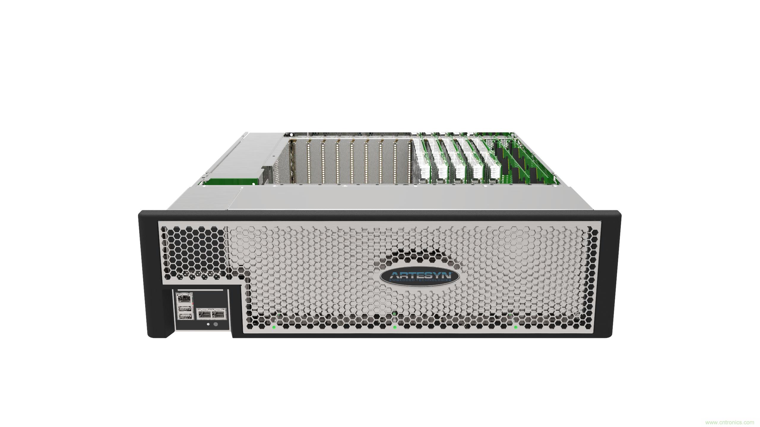 这款3U高(5.25 英寸,133.4mm)的MaxCore IPC 平台只有508mm深,因此可安装在19英寸的标准规格服务器机架之内。这个系统可采用多达两个内置式1,100W(交流)电源,为每一PCIe插槽可提供高达150W的功率输出。这个计算服务器平台最多可装设3个1,100W的电源,让系统有足够的冗余供电。此外,这个平台即使在40摄氏度的温度环境下以高达1,800W的输出功率操作,其散热系统也能耗散所产生的全部热能。