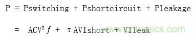 要想实现低功耗,就必须了解电路中功耗的来源[1]。对于CMOS电路功耗主要分为三部分,分别是:电路在对负载电容充电放电引起的跳变功耗;由CMOS晶体管在跳变过程中,短暂的电源和地导通带来的短路功耗;以及由漏电流引起的漏电功耗。其中跳变功耗和短路功耗为动态功耗,漏电功耗为静态功耗。以下是SoC(即CPU)功耗分析的经典公式: