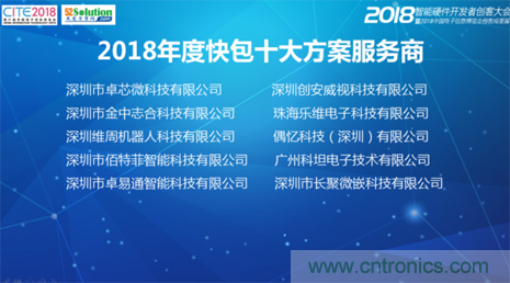 为积极推动跨行业的电子开发需求与方案服务商的对接,大力发展技术外包服务,服务国家创新战略,抢占人工智能技术和应用的制高点。4月9日,由我爱方案网策划承办的2018智能硬件开发者创客大会(Smart Product Developer & Maker Forum, 以下简称SDF)暨2018中国电子信息博览会创新成果展在深圳会展中心4号馆——机器人与智能系统馆盛大开幕。为期三天的SDF围绕快包服务商创新成果展示——发布重磅产品,展示重量级解决方案;主题峰会/论坛——探讨前沿技术话题,分享企业经验,评选优质服务商;技术采购对接——洞悉技术与商业的未来三大主题活动进行,并邀请数十位行业知名领袖倾力打造 5场专题论坛。