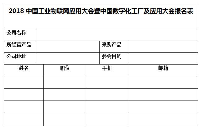 2018中国工业物联网应用大会暨中国数字化工厂及应用大会报名表