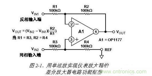如果R1 = R3,R2 = R4,则VOUT = (VIN2—VIN1)(R2/R1)
