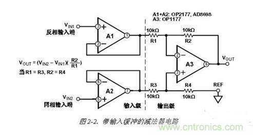 另外,这一电路要求电阻对R1 /R2和R3 /R4的比值匹配得非常精密,否则,每个输入端的增益会有差异,直接影响共模抑制。例如,当增益等于 1 时,所有电阻值必须相等,在这些电阻器中只要有一只电 阻 值 有 0.1% 失 配 , 其CMR便 下 降 到 66 dB(2000:1)。同样,如果源阻抗有 100 Ω的不平衡将使CMR下降 6 dB。