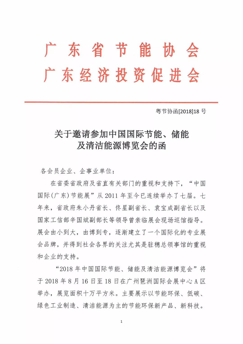 【导读】关于邀请参加中国国际节能、储能 及清洁能源博览会的函。